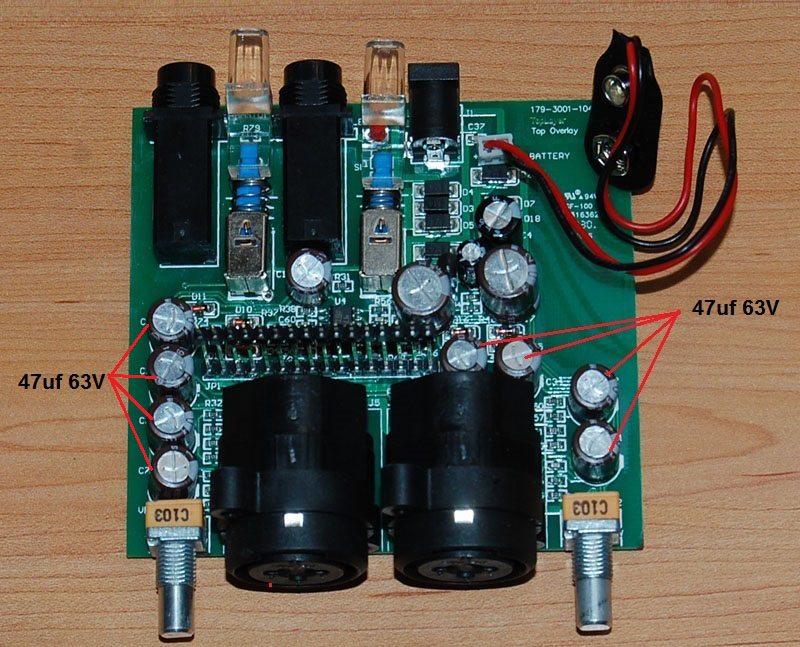 ART did an excellent job building these boards which contain a large number of surface mount components. This of course limits what you can change...the capacitors being pretty much the only item to modify. My choice for electrolytic capacitors in the signal path is the Elna Silmic II. To my ear...it has a smooth, natural sound with no glare or hyper-detail. The harmonic distortion spec of "Third high frequency distortion -120dB or less" makes them suitable for a low-level circuit designed for the human voice and music.