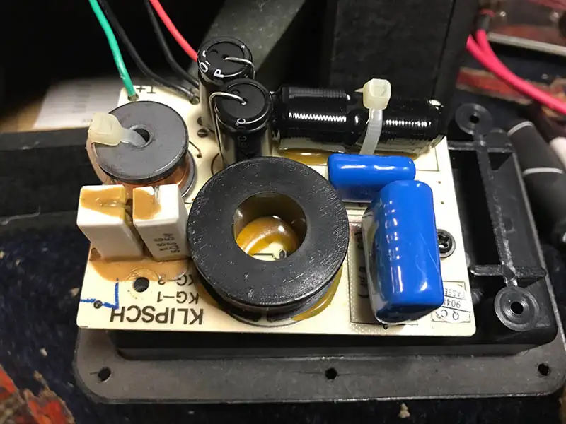 CONCLUSION Nothing too radical occurred with this mod, all I did was replace the ancient electrolytics. The rest of the components I left as is. I listen to them on 24" speaker stands using a modified Dynaco ST-70 and they project a seductive soundstage. Treble is clean, bass is tight if not deep. They provide a dynamically detailed sound with a musical and realistic character. I found that taking the speaker grills off adds a nice bit of detail to open up the soundstage. The KG1 is a bittersweet slice of Klipsch lore. It existed as a one of the final grain-matched speaker models overseen by Paul Klipsch. They emerged from an era when he inspected the assembly line and would even sign the labels on the rear of a speaker when asked by a customer. Sadly, just as the KG1 hit the scene in 1990 its larger siblings the Chorus, Forte, Heresy II and Cornwall were being retired. The replacements Forte II and Chorus II only lasted until 1996. Paul Klipsch died soon after in 2002. Klipsch speakers are still produced today of course but as part of a 21st-century international company building dozens of products instead of the small Hope, Arkansas factory that made less than 10 models and took orders by phone. |