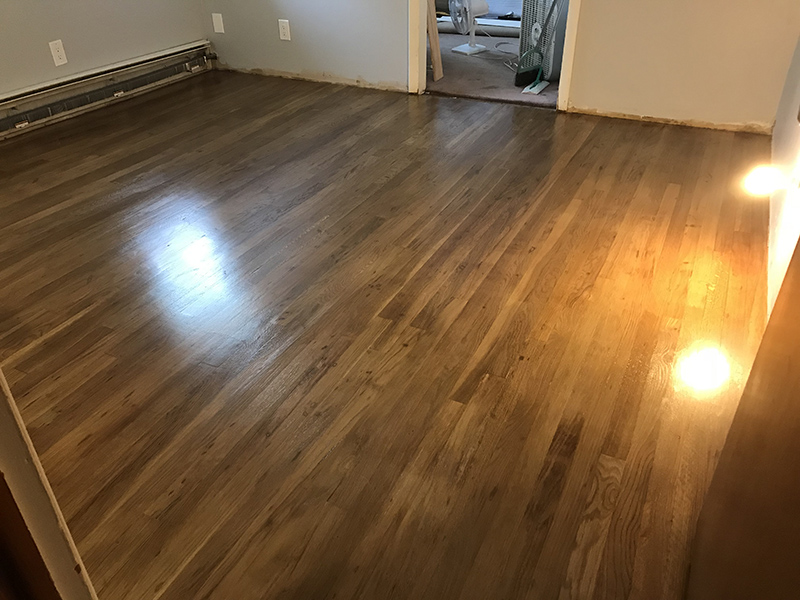 It spread easily and smoothly. I did kept a wet edge and did 2-3 passes to remove pooling and to fill the grain in places, but resisted the temptation to keep going over spots. The whole room took me about 20 minutes. Afterwards I saw a couple of spots where I had left small pools. I decided I would take care of them at the first sanding. No stress allowed here.